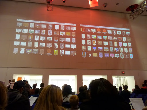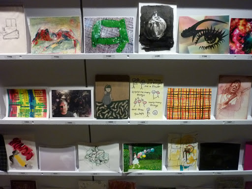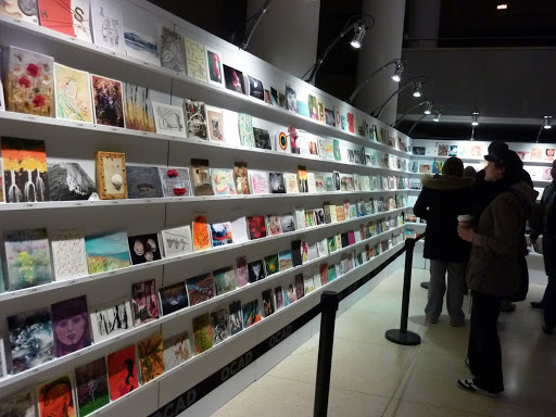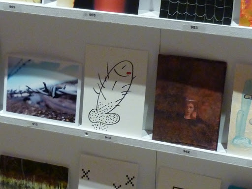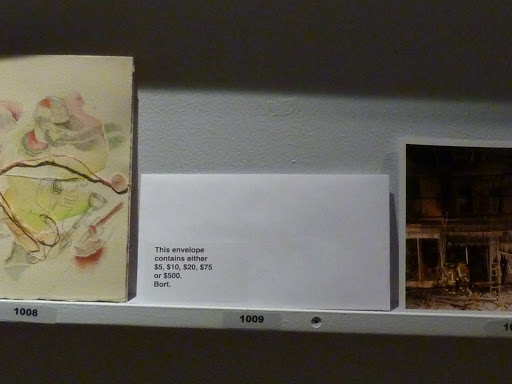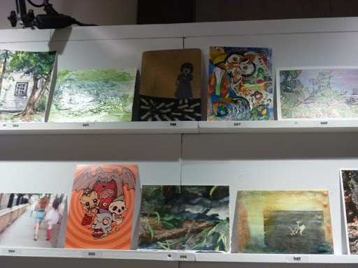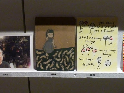 Having relatively bare walls in our house since moving in several years ago, we’ve always been on the lookout for affordable art. This weekend, we participated in the Ontario College of Art and Design’s (OCAD) fundraising event “Whodunit?”. Although its been going on for many years, this was our first time attending. “Whodunit?” is basically a mystery art sale of over a thousand pieces of original art donated by artists who are famous and not-yet-famous, including well-known and celebrity artists, OCAD faculty, alumni and students. Past mystery artists have included Margaret Atwood, Tom Cochraine, Gary Taxali and Atom Egoyan. All pieces are the same size (5 ½” by 7 1/2”) and the same price ($75). Although you get to preview the art, you won’t know who the artist is until you purchase it.