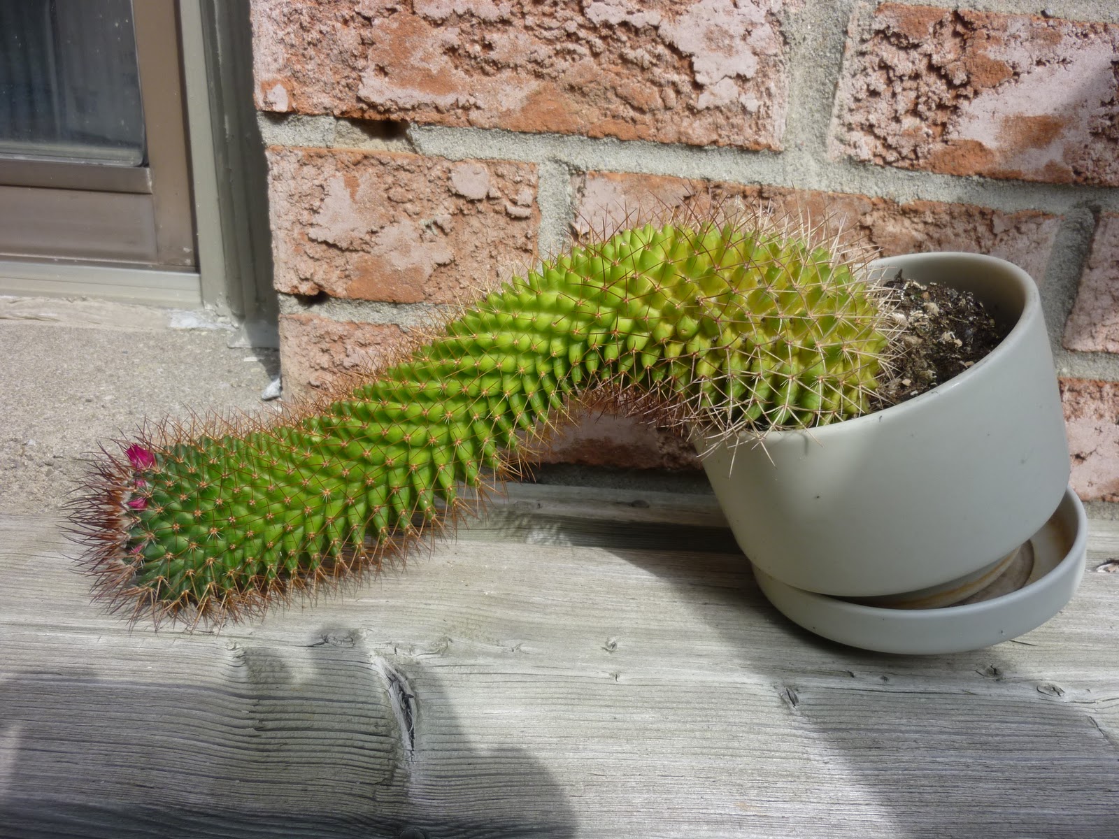 During this past summer, my parents underwent a much needed, massive cleanup of their house. As part of the process, they temporarily moved some stuff to the backyard to make room. Gradually as they progressed, they moved things back in the house. Inadvertently, things were left out longer than they should and some were forgotten over the summer. I was in the backyard a few weekends ago and this cactus was something that never made it back in. Either it was tipped over or it was in a shaded area and had morphed to catch some light. Regardless, this is the end result of it’s displacement. We now call it the “p*nis” or “worm” cactus.