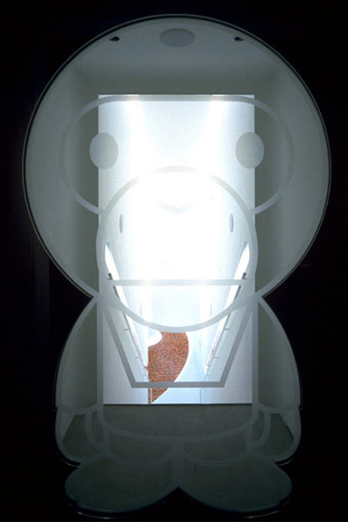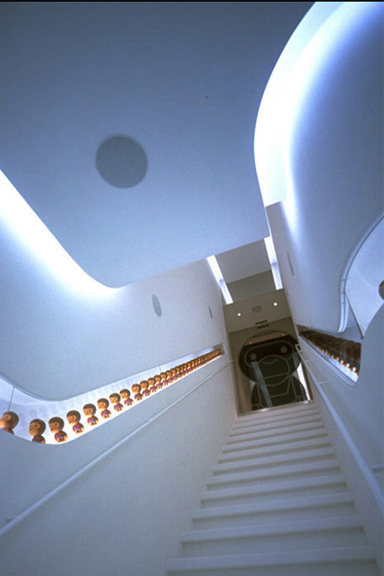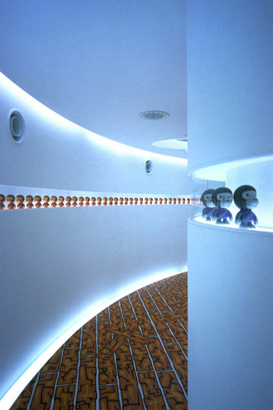 In one of my previous entries, I wrote about the fall of Japanese fashion brand “A Bathing Ape” (Bape) and how they were one of the coolest brands out there. One way they separated themselves from the competition was through their incredibly designed stores by the Wonderwall design firm. It’s sad that a lot of their shops are now closed down, but you can see most of them on Wonderwall’s site (many of the below pictures were found there). Anyways, when I was in Japan several years ago, I was able to check out the Baby Milo store. Its a hidden store that’s pretty much unmarked other than this sheet of glass, frosted with the Baby Milo logo. This piece of glass also serves as a sliding door (no handles, no knobs…it just opens when you stand in front of it)