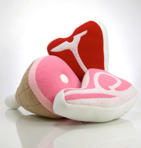On a somewhat related note, I’ve been buying stuffed animal toys for the Beast for a while now and came across these awesome plush meats from a company called Sweet Meats. They’re a bit pricey but they’d be great for any dog (or child). I can imagine the Beast running around the corner with one of these bad boys in his mouth. You can pick them up here.