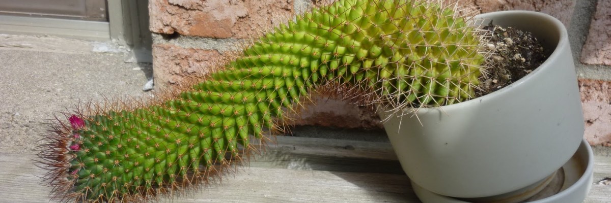 During this past summer, my parents underwent a much needed, massive cleanup of their house. As part of the process, they temporarily moved some stuff to the backyard to make room. Gradually as they progressed, they moved things back in the house. Inadvertently, things were left out longer than they should and some were forgotten over the summer. I was in the backyard a few weekends ago and this cactus was something that never made it back in. Either it was tipped over or it was in a shaded area and had morphed to catch some light. Regardless, this is…
