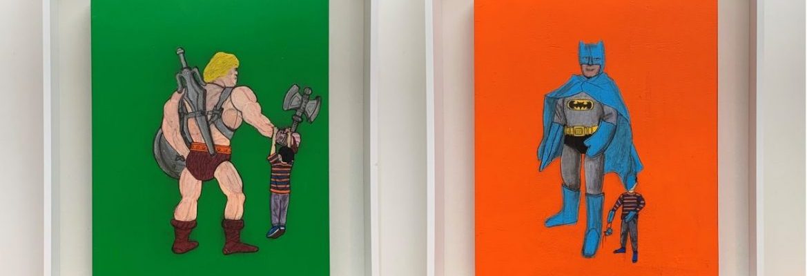 “Saturday Mornings” (2021). Oil and acrylic on wood panel . Series of six drawings (10″x8″).